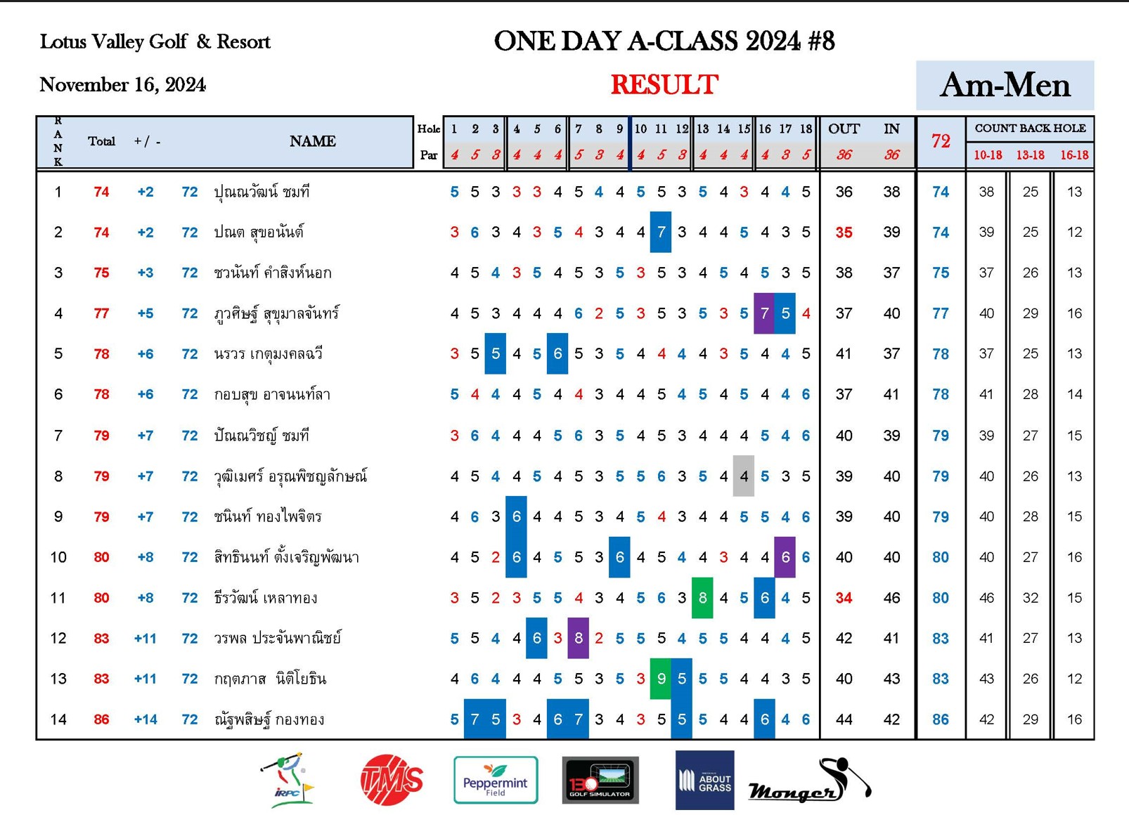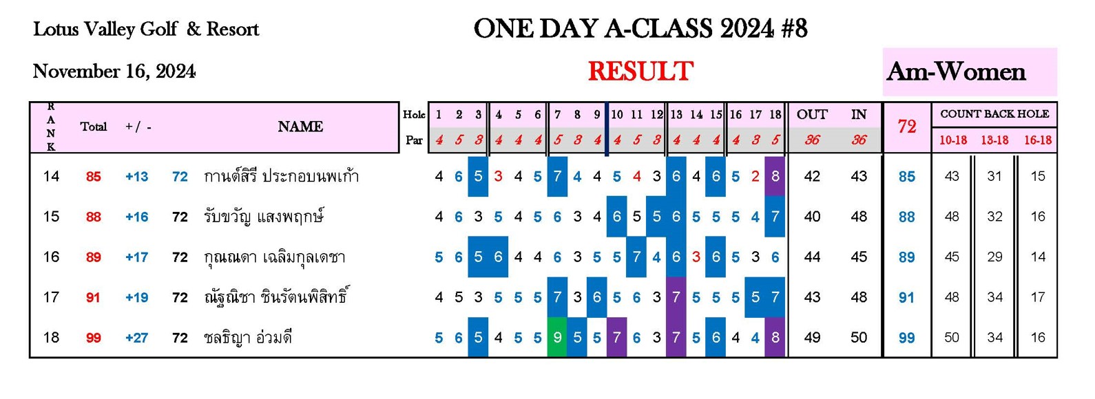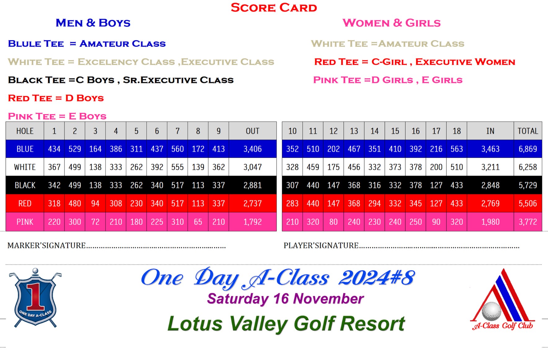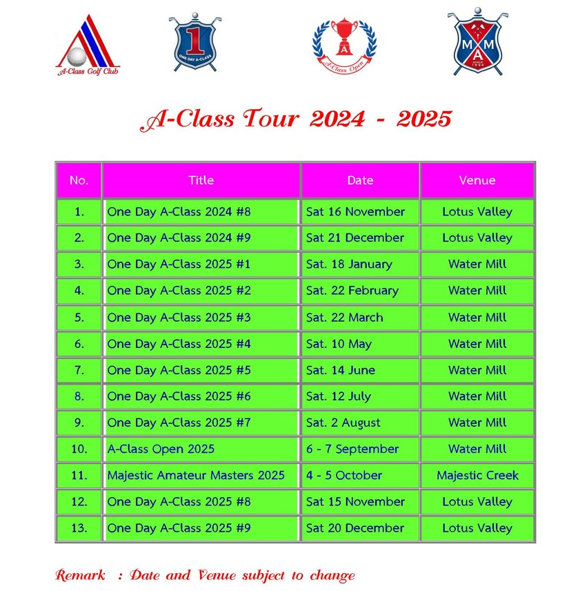 ระเบียบการ One Day A-Class 2024 แข่งขันวันเดียว 18 หลุม