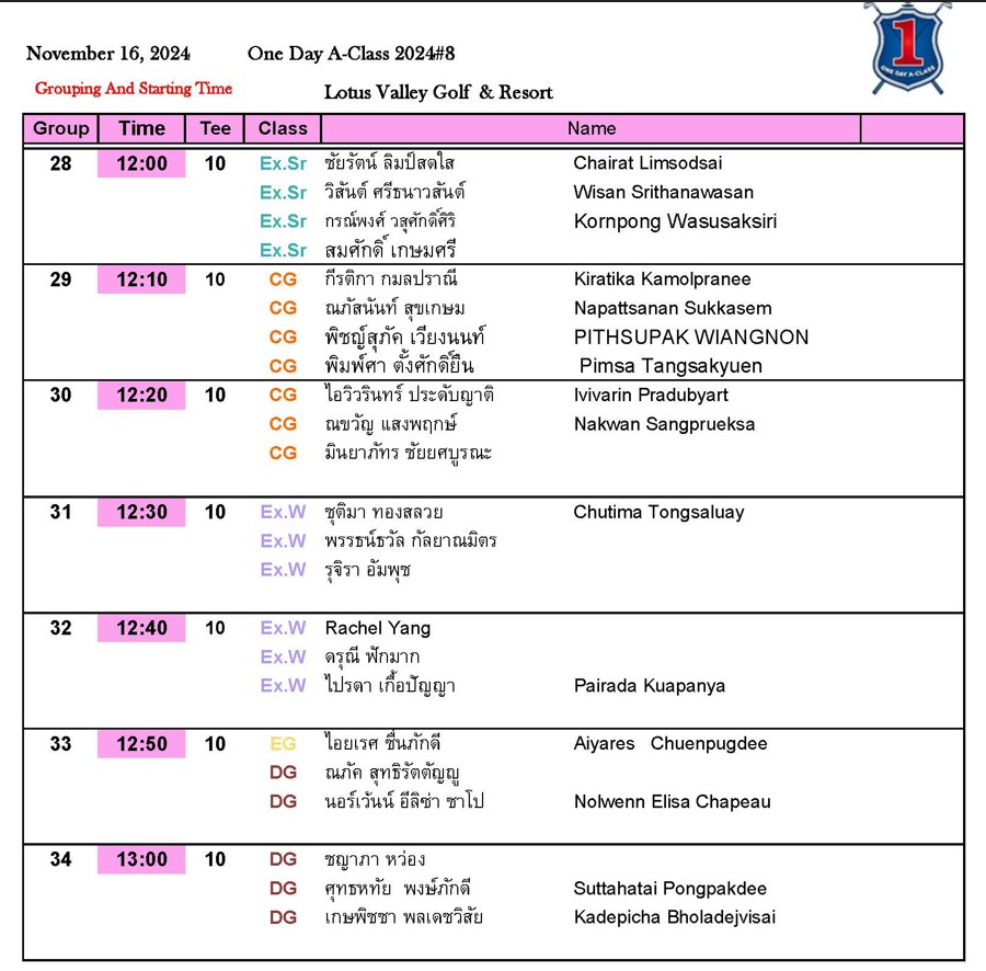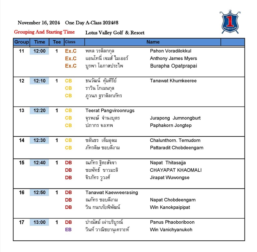 ชมรมพัฒนากอล์ฟไทย เปิดคลาสใหม่ Excellency Class นักกอล์ฟชายอายุ 35 ปีขึ้นไป แข่งขันมาตรฐานตามกฎข้อ 3.3 และไม่อนุญาตใช้รถกอล์ฟ ชิงเงินราวัล10,000 บาท แชมป์รับ 6,000 บาท รองแชมป์ รับ 4,000 บาท ที่ 3-4-5 รับถ้วยรางวัล  เริ่มนัดแรก เสาร์ที่ 16 พฤศจิกายน 67 สนามโลตัส วัลเลย์ ระยะแข่งขัน 6,200 – 6,400 หลา Excellency Class รับ15 คน สมัครแข่งขันได้ที่ ID Line: wichitttt  ค่าสมัครแข่งขัน 1,950 บาท (ไม่รวมค่าแคดดี้ ค่ารถกอล์ฟ) โอนเงินเข้าบัญชีประธานชมรมฯนายวิชิต บัณฑุวงศ์ ธ.ไทยพาณิชย์  ออมทรัพย์ 164-408924-2 Line ใบ Pay-in มาที่ ID Line: wichitttt