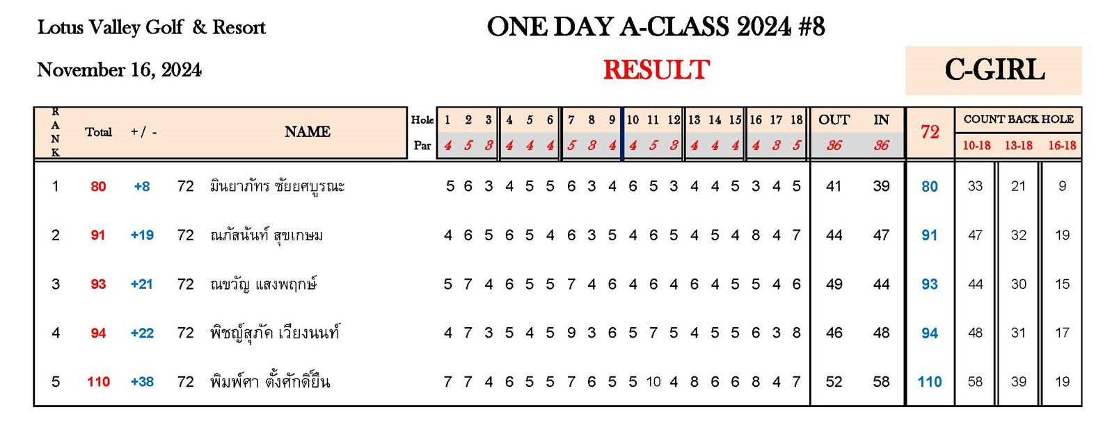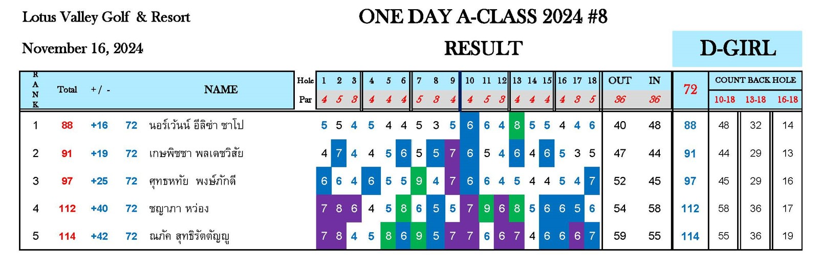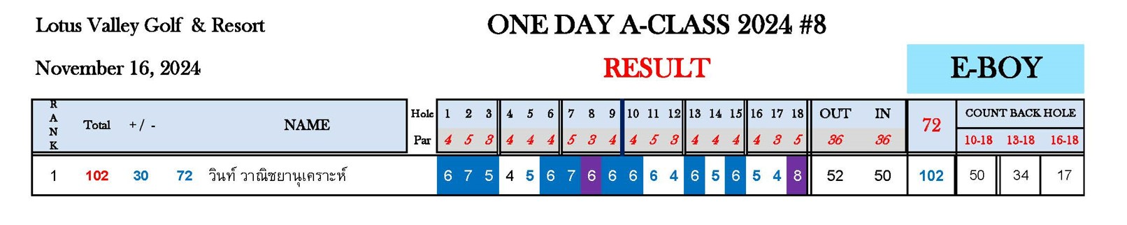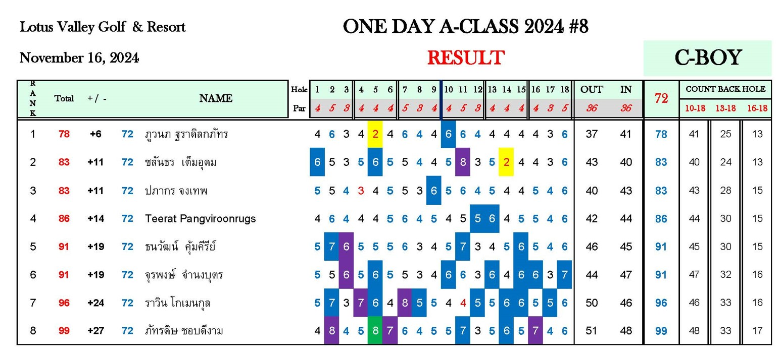 หมายเหตุ : ระยะแข่งขัน One Day A-Class 2024#8 สนามโลตัส วัลเลย์