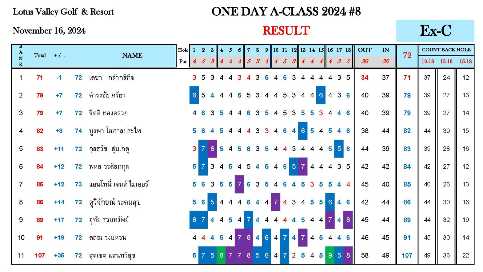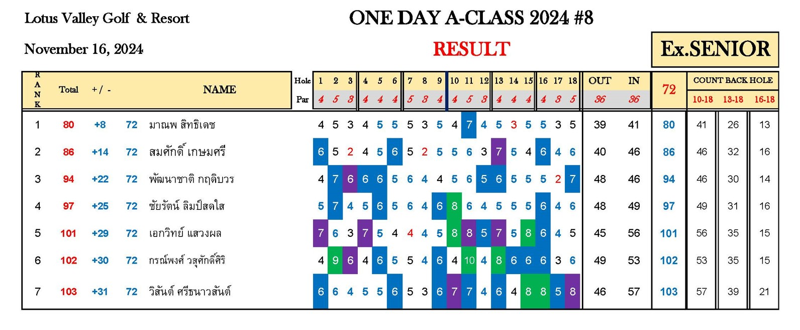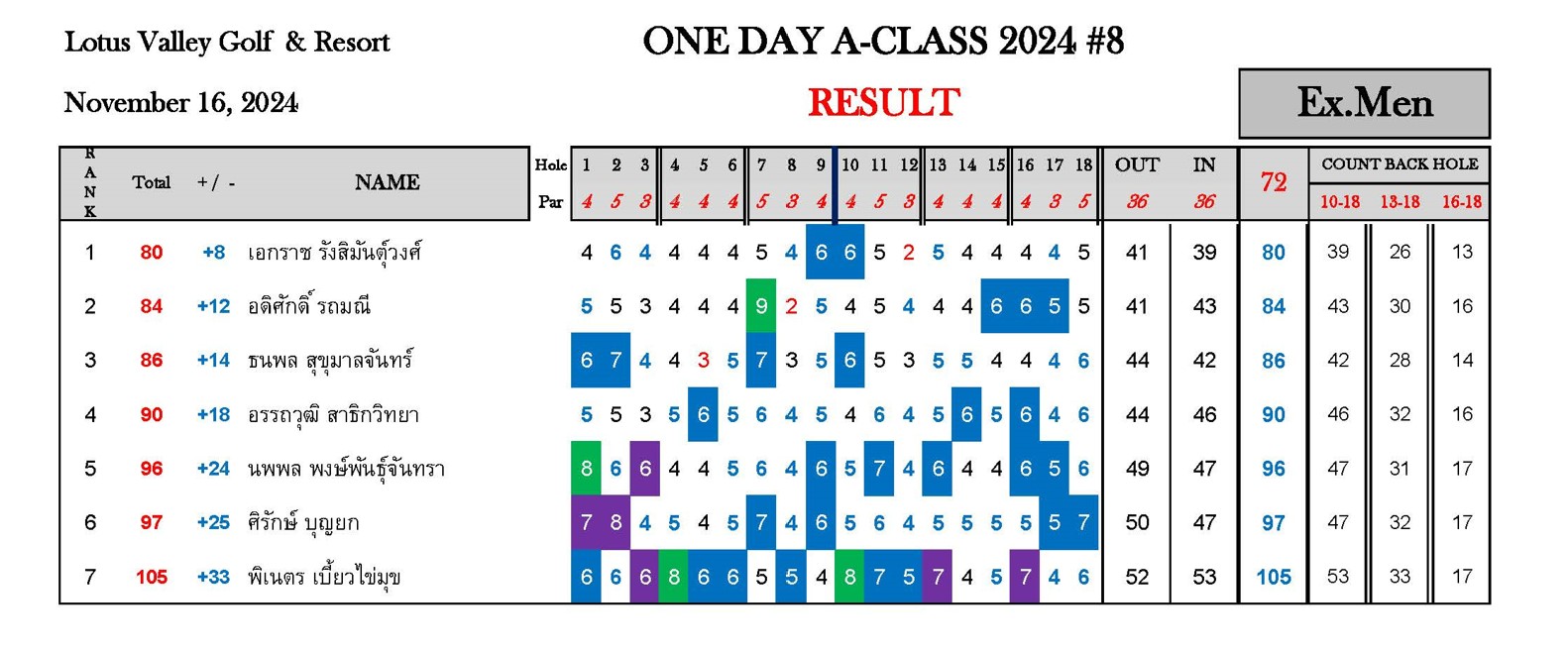 หมายเหตุ : ระยะแข่งขัน One Day A-Class 2024#8 สนามโลตัส วัลเลย์